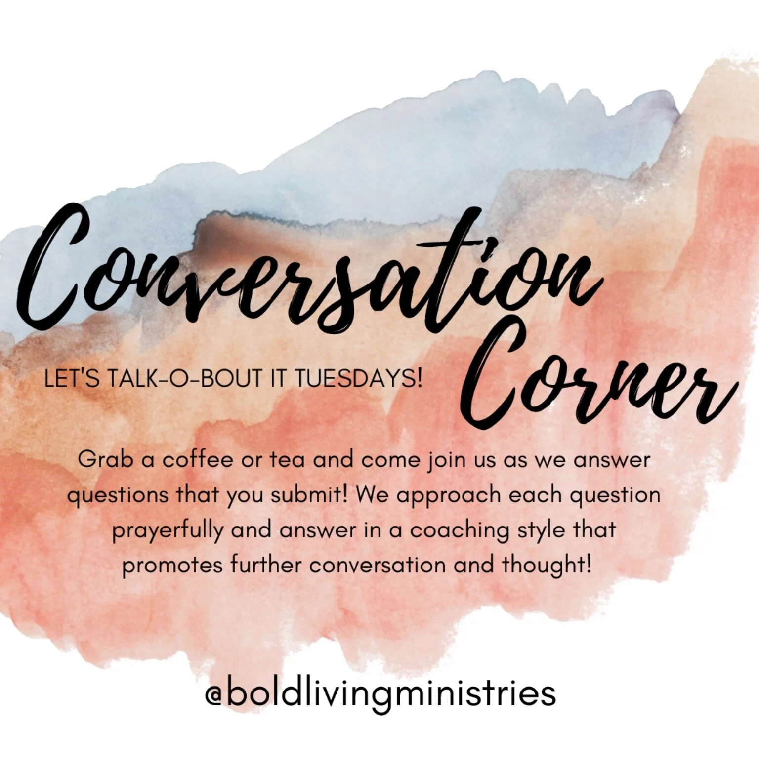 Hey all! Thank you for joining us for our first Conversation Corner on Tac-O-Bout it Tuesday! In this video we discuss what BOLD Living means and encourage you to comment below with what Beautifully Original Lord Directed means to you!